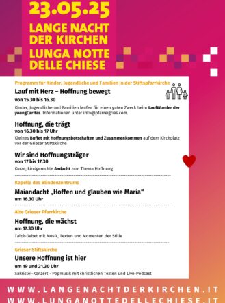 Unsere Pfarrei lebt von Zusammenkünften, gemeinsamen Gesprächen und vielen neuen Erlebnissen. Was, wann und wo findest du in unserem Veranstaltungskalender.