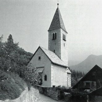 Der romanische Kirchenbau (um 1334) wird im 14. Jh. erweitert und erhöht.